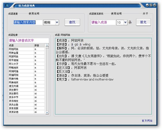 给力成语词典在线查询为免费软件,共收录汉语成语51470多条,是目前收录量最多成语词典。本词典中大部分成语都做了校对,工作量大耗费了一个多月。