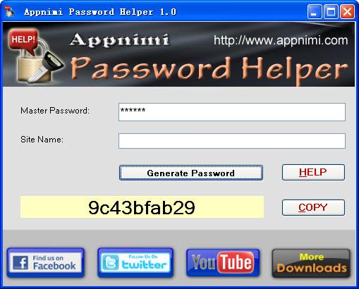 Appnimi Password Helper是一个密码生成软件,只需要你输入主密码和网站,即可生成一个强大到牢不可破的登录密码。
