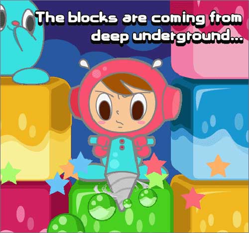 钻地先生NAMCO名作之一,几乎在所有平台推出过( 如街机, PS, DC, GBA, DS, GC...... )游戏规则十分简单,向下挖掘直到抵达终点。玩家控制的Driller虽然能力各异但基本装备都是一把钻子和一颗Air胶囊。四个以上相同颜色的方块连在一起会消失,Air胶囊会随着玩家的每一次钻击而消耗。时间的流逝也会造成Air消耗,当Air消耗殆尽Driller就损失Life一次。每位Driller只有3条命,除了Air耗尽会损命之外,被上方坍塌下来的“砖头”和“土块”砸死也是重要的“伤亡原因”。