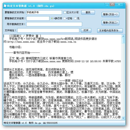 特定文本替换器能把网上下载的TXT小说自带广告文字替换掉,让读者不再因为文本里有广告而烦恼,很适合电子书阅读爱好者来使用。可用特定文本替换器替换掉小说自带TXT广告。