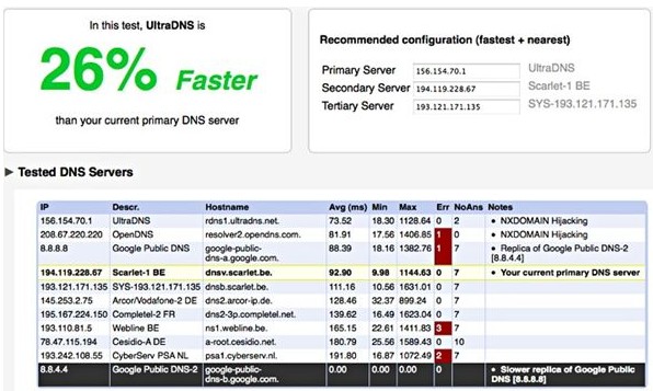 为了获取最贴近实际情况的数字,namebench会自动调用用户浏览器的浏览历史来进行测试。此外,软件还会自动检测不同IP之间的缓存共享关系并移除速度最慢的服务器来避免不准确的测试结果。