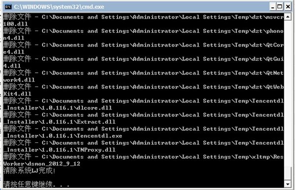 清除系统LJ.bat是一款DOS命令来做的一款系统清理小工具,可以有效的清除系统垃圾文件、缓存文件、比一些专业的优化软件更显得专业。
