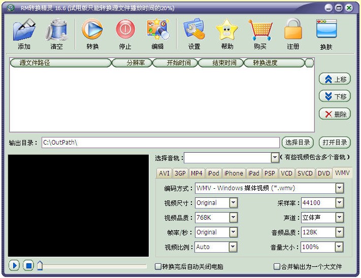 1、RM、RMVB转换为AVI(DivX/XivD/MJpeg)、MPEG、VCD、SVCD、DVD、WMV;