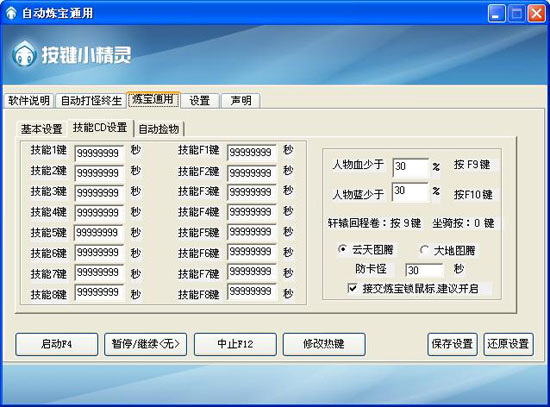 4.人物血蓝按百分比,自动补血补篮,补血F9键,补蓝F10键。