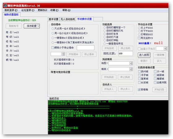 主要功能有:无人自动挂机,自动猎命,自动打蟠桃,自动打生肖,自动打boss,挑战精英,扫荡卖卷轴等等。