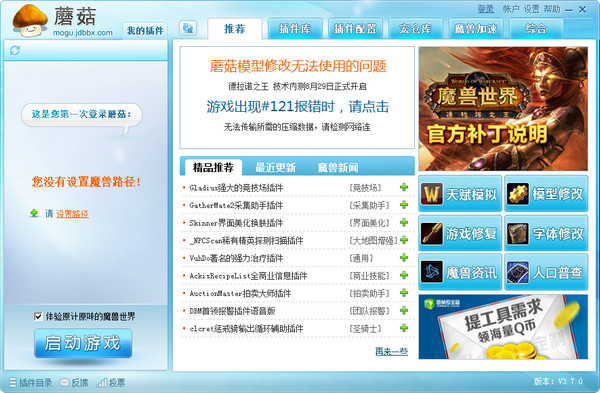 分类列出蘑菇收录的上千种优秀魔兽插件,提供多款整合插件下载