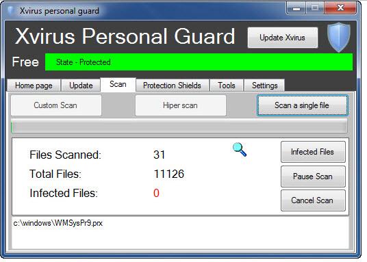 Xvirus personal guard中文名为电脑安全卫兵,用来保护你的计算机不受木马,病毒,流氓软件,广告软件,键盘记录器,蠕虫等有害程序的入侵,它是一个理想的病毒木马防范查杀解决方案。