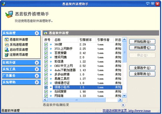 现在网上的流氓软件越来越多,前些日子网络行业协会点名了十大流氓软件,这些软件的特点大多时强制安装,而且不容易卸载.本软件即是针对这种情况编写的,软件目前可以清理下列流氓软件: