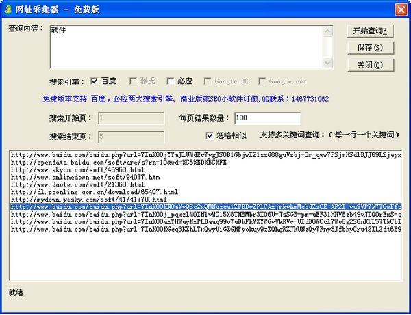 网址采集器 可以批量保存已打开的网址,支持ie,免费版支持百度,必应两大搜索引擎