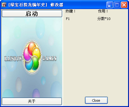 绿宝石接龙编年史修改器作弊器功能:F1 分数X10十倍