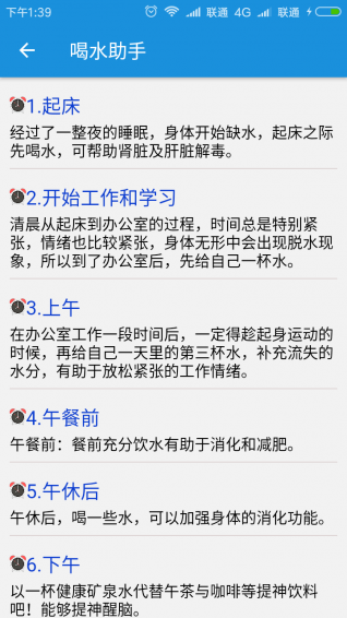 喝水助手app V1.4.0安卓版 喝水助手app是一款非常实用的喝水提醒软件,喝水助手app为用户提供便捷的喝水提醒功能,让用户每天可以按时饮水,补充水分,为用户健康提供帮助。