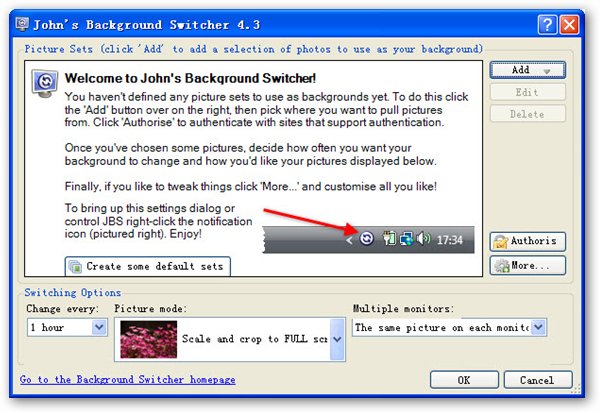 2、你可以使用网络上的照片作为背景图片,比如“Picasa”、“Flickr”上面的,但是这个应该使用的人很少,因为基本原理应该还是下载到本地,并自动切换,这个功能好像好像还要填写你的用户名和密码,还是手动方便!