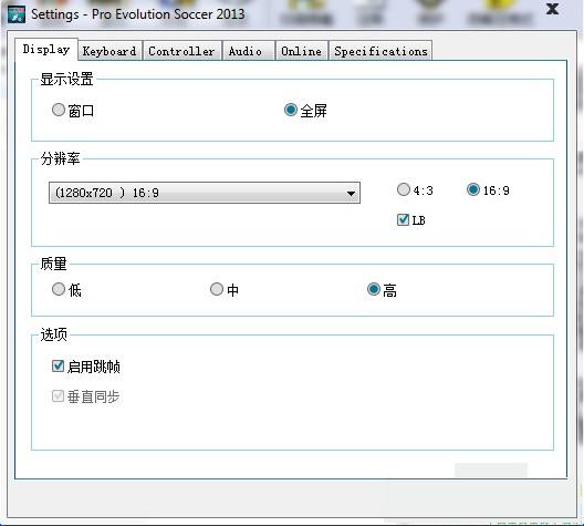 实况足球2013(Pro Evolution Soccer 2013)Setting游戏设置工具汉化版使用说明:1.解压缩2.把settings.exe覆盖到游戏根"目录"下即可