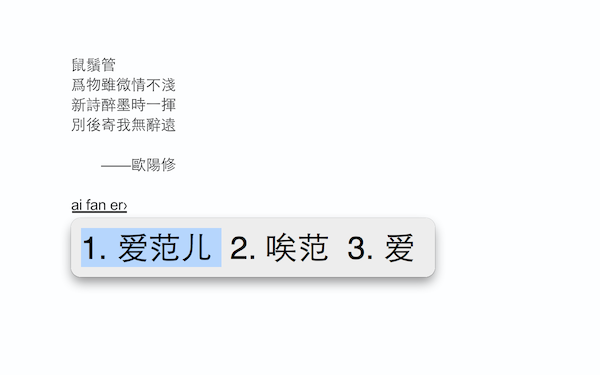 鼠须管快速、流畅、稳定、小巧。对于输入法而言,快捷和流畅可以算最重要的体验之一。从使用体验看,它的流畅程度超过了系统输入法。有人甚至还说,仅仅速度和流畅,鼠须管就可以“秒杀”其他的第三方输入法。在Mac平台使用鼠须管输入法过程中,也几乎没有遇到此前一些第三方输入法常常会遇到的卡顿甚至死机的问题,你会忘记彩虹球。