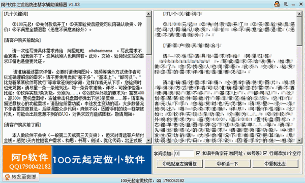 发贴防违禁字辅助编辑器借此程序,用户可设置在待发表内容中自动添加指定字符。