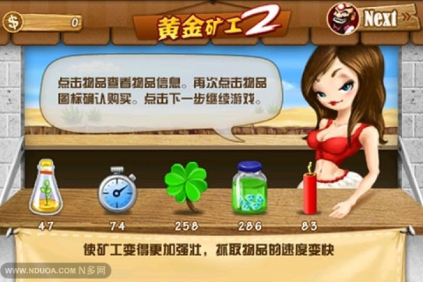 继黄金矿工之后的黄金矿工2操作更加的流畅。游戏中你将扮演一名黄金矿工,开采黄金,你必须挖到一定的分数才能过关,大金子小金子价钱都不同,带问号的口袋可能会有好东西哦~之后的关卡还会有钻石出现,捞到钻石你就赚了,不仅捞的快还值钱,但如果捞到石头可是会很影响速度的,而且不值几个钱......