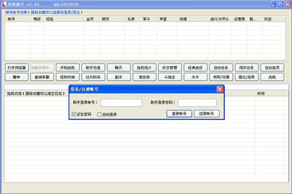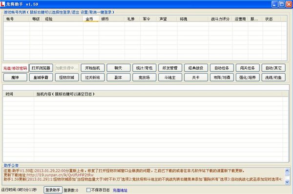 龙将助手V2.01版更新(2014.09.09)1、修正2.0版本在还原“境界丹”时在特殊情况下会把大于6级以上的境界丹卸下来,花费掉金币的BUG!