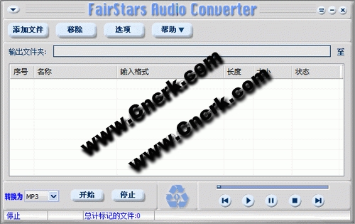 FairStars Audio Converter V1.81 汉化绿色特别版 FairStars Audio Converter是一个媒体文件转化工具。可将WAV, APE, OGG, VQF, MP1, MP2, MP3, WMA, WMV, ASF 转成 WMA, MP3, VQF, OGG, APE, WAV格式。支持批处理。转换音频文件时不生成临时文件,高速转换,支持调整音量,ID3标签。