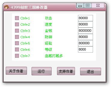 创世三国修改器是一款创世三国游戏作弊工具。创世三国修改器主要功能 攻击加倍 攻击加速 无限钱 无限防御 无限经验 无限登记