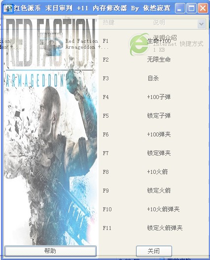 红色派系末日审判 十一项修改器下载 红色派系末日审判比较冷门,许多玩家都不知道有这样一款游戏作品,可能是游戏的宣传力度不够吧,其实游戏的质量还是蛮高的,不仅细腻的画面,还有NB的引擎,主角手中的锤子可以扫平一切阻碍,神马战地3寒霜2都弱爆了。游戏题材为科幻类,讲的是外星人入侵,一把锤子打天下的纯爷们主角拯救世界的故事,游戏的操作手感很棒,玩起来很爽快。