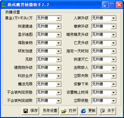 助成魔兽秘籍助手 V3.0 绿色版 魔兽秘籍是指在暴雪公司开发魔兽争霸的游戏中在单人模式下使用的一种做弊代码。助成魔兽秘籍助手专为魔兽争霸3以上版本的游戏玩家开发,单人模式下使用。
