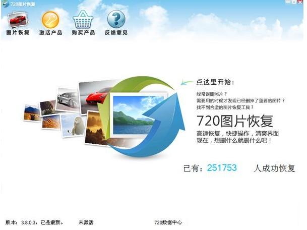 720 图片恢复是一款专门针对图片丢失的专业级数据恢复系统,该系统操作简单易用且功能强大,可以快速恢复被误删除、误格式化、分区丢失以及误GHOST产生的图片丢失。
