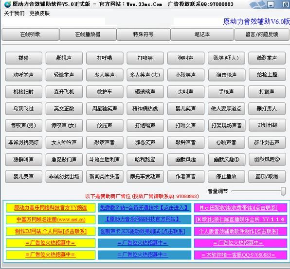 原动力音效辅助工具是一款应大多人响应开发的一款小小的音效特效音辅助工具软件内包括群众笑声,尖叫声,掌声,婴儿笑声,狗叫声,打呼噜,打喷嚏,乌鸦飞过等等各种音效在内!方便了玩YY语音和Is语音以及qqtalk语音的朋友们!让您的语音生活更加的美好!此辅助工具适合用于语音平台上做主持人,mc喊麦的时候使用,会让你的主持人以及喊麦的时候更具有活力!