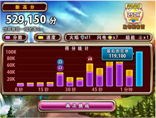 Bejeweled Blitz PC版已充好了1000000枚金币(仅限正版购买用户连接Facebook后获得,免费下载用户连接时只能获得50000枚金币),将能载着你如火箭升空般冲上排行榜。这是无法抵挡的挑战!