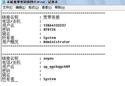 自动获取本机宽带帐号密码并自动保存到D盘。完美解决宽带密码忘记的问题! 有了它,做系统不怕弄丢上网的帐号密码了。