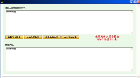 1.同时支持自定义火星文转换功能,是打造个性签名,QQ网名必备的工具;是文章阅读中字体转换的常用工具。