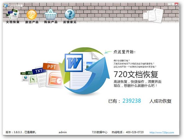 720文档恢复是一款免费文件恢复软件,针对常用办公文档类恢复的专业级数据恢复系统,该系统继承了720系列产品一贯的易用性。
