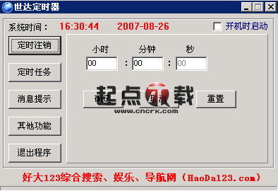 世达定时器是一款小巧的定时自动操作工具。它能定时执行程序,注销系统。还能设置定时提示,在您需要的时候提醒您,防止您忘记重要的事情。新版增加倒计时和计时器功能^_^
