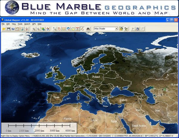 Global Mapper 是一款地图绘制软件,不仅能够将数据(例如:SRTM数据)显示为光栅地图、高程地图、矢量地图,还可以对地图作编辑、转换、打印、记录GPS及利用数据的GIS(地理信息系统)功能,6.xx版增加了直接访问USGS(美国地质勘探局)卫星照片TerraServer数据库和Global Mapper内部的地形图及以真实的3D方式查看高程地图的功能。