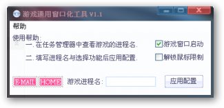 游戏通用窗口化工具下载 V1.1 免费版 本软件是一款游戏窗口化工具,让你在游戏与桌面间的切换更容易,不用再因为只能全屏游戏而无法聊天或看电影.游戏窗口化工具适用于绝大部分只能全屏运行的游戏.
