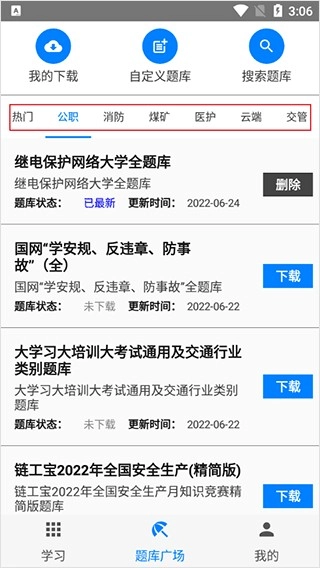 1. 在题库广场依据分类查找出需要练习的题库。