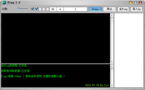 全Ping多线程,多任务多IP批量ping工具,Ping 间隔时间( 滑块条可调节,右键恢复默认值 )