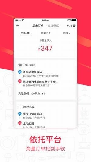 3.根据系统提供的订单信息安全、准时收送百度外卖订单,及时返还订单钱款。