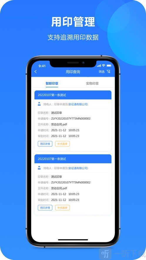 这是一款专为印章使用打造的智能化管理软件。该软件与物联网设备相结合,为企业主以及事业单位负责人提供了一个可实现无忧用章的卓越工具。借助它,即便用户身处外地,负责人依然能够对印章进行掌控,从而及时处理相关事务。