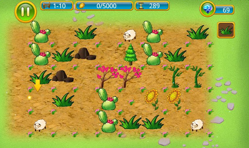 在美丽的田野里, 生活着一群小羊和很多开心的植物。植物有特异功能, 当三颗或者以上的相同植物生长在一起的时候就会变身为另外一种高级植物。但是小草很着急, 因为小羊非常喜欢吃草, 看到草就吃, 所以小草很努力的寻求变身以避免被吃掉。你能帮帮他们吗?