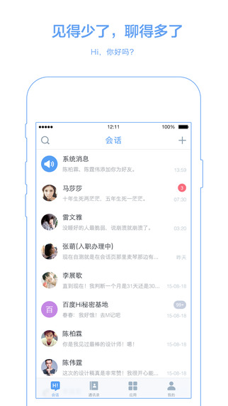 1.支持百度帐号登录2.支持收发消息、表情、图片