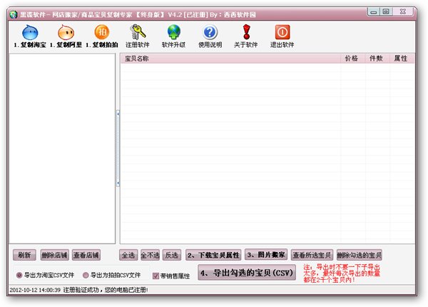 黑谍店铺宝贝下载专家可以下载任意淘宝店的宝贝,下载后可以导出CSV文件,然后您可以导入淘宝助理,上传至 您自己的店.本软件实属快速上架宝贝/快速搬家的好帮手。黑谍店铺宝贝下载专家支持图片搬家功能,软件可自动将对方描述的图片搬至您自己的淘宝空间,并自动更新描述的图片链接.本软件为同类软件中功能最全面的一款.