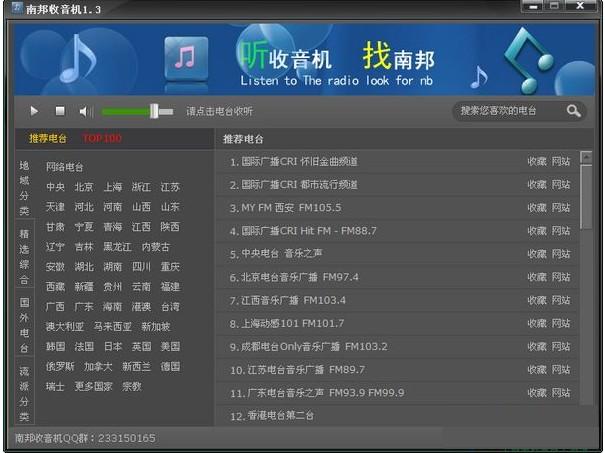 随着网络加速的发展,网速越来越快,网上听电台已不是问题了。使用南帮收音机,只用鼠标稍稍点一下,就能让您听遍全世界的声音。南帮收音机是一款能收听全球各地网络电台的软件。它具有操作简单、强大的数据管理、在线更新电台数据等特点。