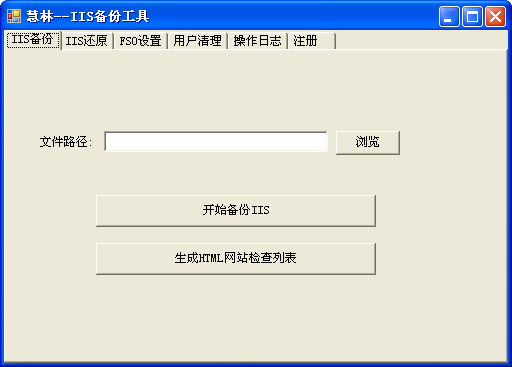 IIS备份还原工具是一款针对IIS的备份及还原工具,可以把IIS的站点配置备份成XML文件,重装机器后,再把他还原到IIS中,是网管重装机器的必备工具