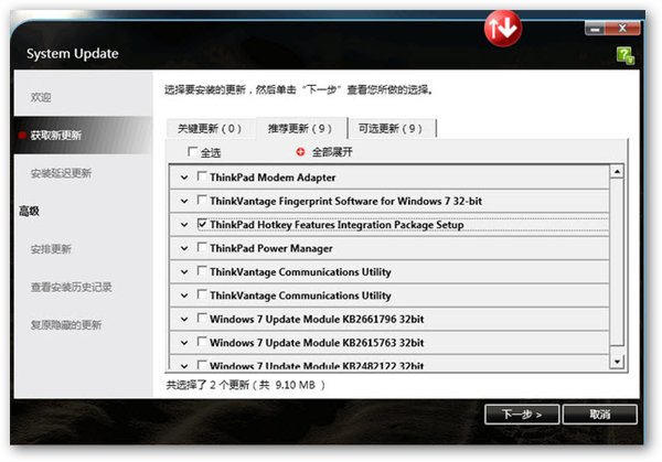 System Update软件可以通过因特网直接从联想服务器上下载系统相关的软件、驱动或BIOS更新程序。