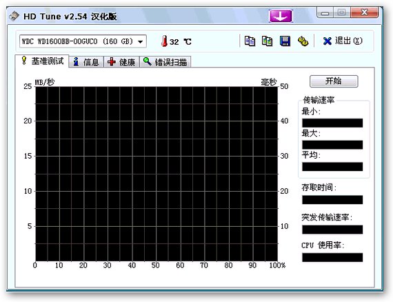 HD Tune(硬盘工具) V2.55 汉化修正绿色版 HD Tune 是一款小巧易用的硬盘工具软件,其主要功能有硬盘传输速率检测,健康状态检测,温度检测及磁盘表面扫描等。另外,还能检测出硬盘的固件版本、序列号、容量、缓存大小以及当前的Ultra DMA模式等。虽然这些功能其它软件也有,但难能可贵的是此软件把所有这些功能积于一身,而且非常小巧,速度又快,更重要的是它是免费软件,可自由使用。本人觉得,把它作为一个硬盘温度实时监测软件非常合适;还可用它很快速地了解到自己硬盘的实际性能到底怎么样,也算是一个小小的评测吧。