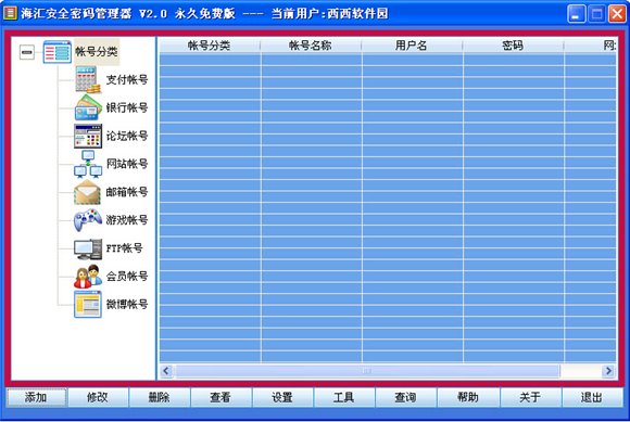 1:海汇软件根据目前电脑用户帐号多密码多的现实情况,特意编写了这软件。