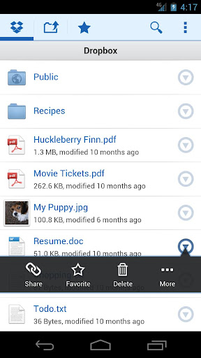 当你出门在外时,阅读你的文档或者浏览相册。将照片或视频保存到你的 Dropbox,只需点按几下即可与朋友共享。即使意外将 Android 忘在出租车了,你的资料在 Dropbox 上依然完好无损。