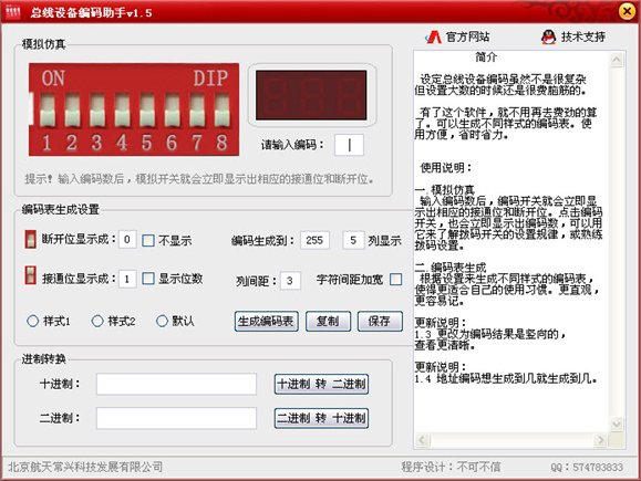 总线设备编码助手 V1.5 绿色免费版 设定总线设备编码虽然不是很复杂但设置大数的时候还是很费脑筋的。有了这个软件,就不用再去费劲的算了。可以生成不同样式的编码表。使用方便,省时省力。