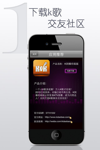 K到爆是国内首家基于移动互联网的K歌交友社区,该软件集成了歌曲下载、录音合成、歌曲分享至微博、K歌比赛、位置交友、私信聊天、达人推荐等功能,让你随时随地K歌交友两不误! 目前覆盖苹果和安卓平台,包括付费版《K到爆》《K到爆HD》免费版《K到爆欢唱版》《K到爆欢唱版HD》.