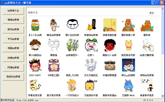 QQ表情包管家是国内首创的以QQ表情为集合的软件,专门为喜爱QQ表情的用户设计,软件绿色操作简单,一键可安装,使用方法傻瓜式操作。容纳表情数百种QQ表情安装包,分为表情QQ大全、情绪QQ表情、节日QQ表情、游戏QQ表情、明星QQ表情、动漫QQ表情、搞笑QQ表情、阿狸QQ表情、炮炮兵QQ表情等